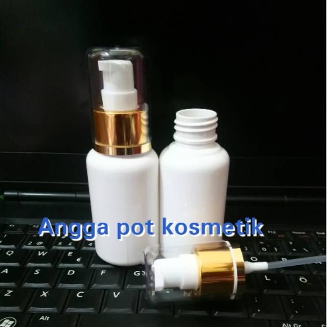 Beli Botol tubular 60ml putih tutup pump gold di sini
