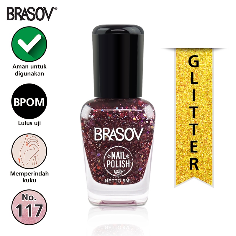 BRASOV Kutek Cat Kuku Glitter 8 ML Kutek Glitter Nail Polish Glitter BPOM SGL01-XX-CT 117-128 dijual oleh toko Brasov Official Shop yang berlokasi di KOTA JAKARTA BARAT.