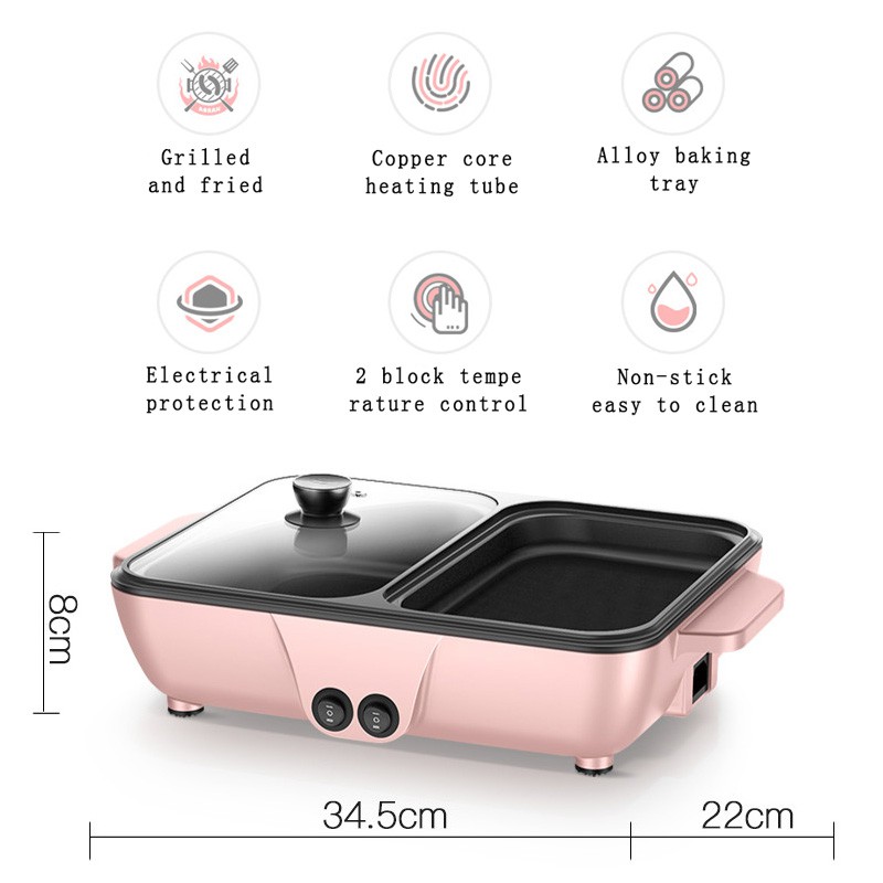Beli SHENAR, MINI ELECTRIC HOTPOT 2 IN 1 / MINI STEAMBOT & GRILL PAN BBQ MULTIFUNGSI SHABU - SHABU di sini