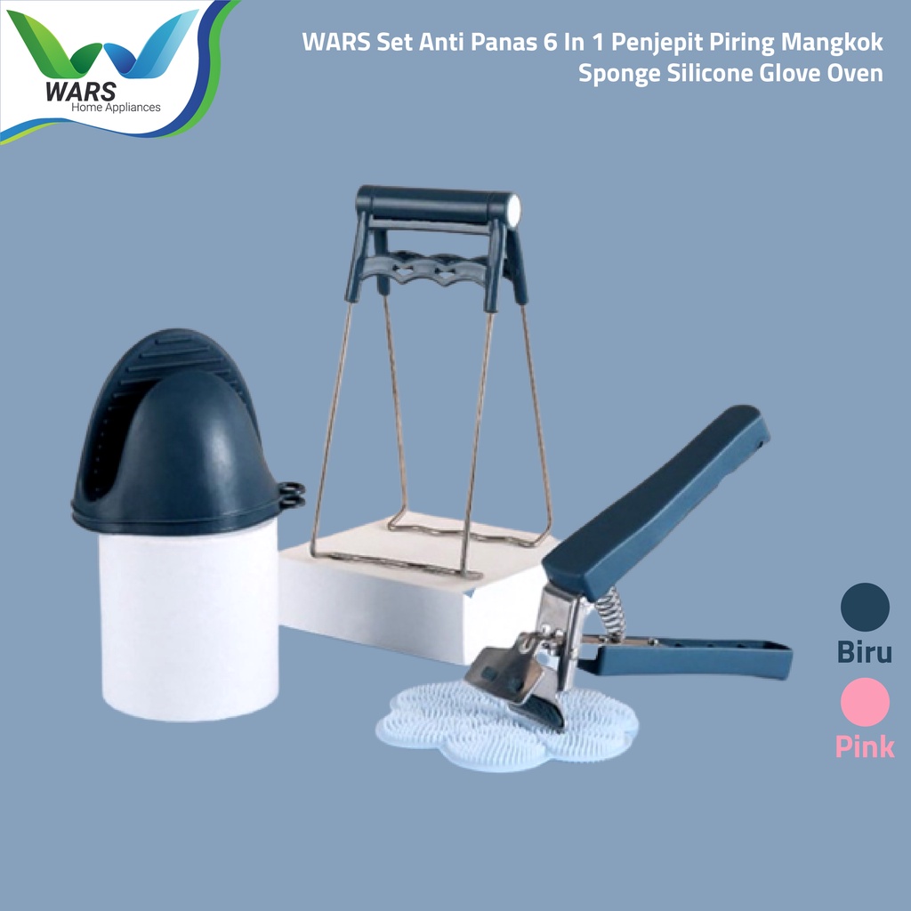 Beli WARS Set Anti Panas 6 In 1 Penjepit Piring Mangkok Sponge Silicone Glove Oven di sini