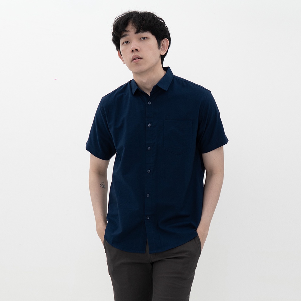 Beli M231 Kemeja Pria Basic Polos Oxford Pendek Navy 1457G di sini