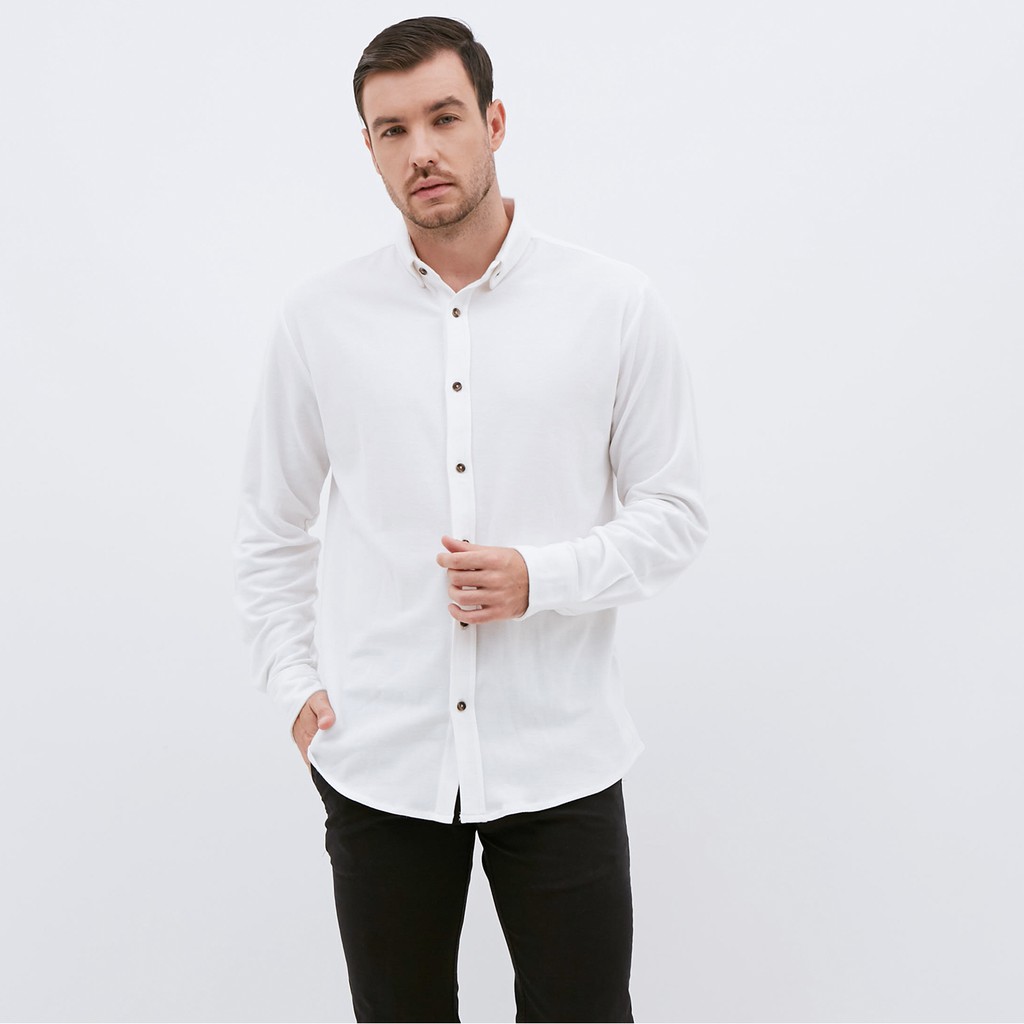 Beli M231 Kemeja Pria Cotton Pique Panjang Putih 1792B di sini