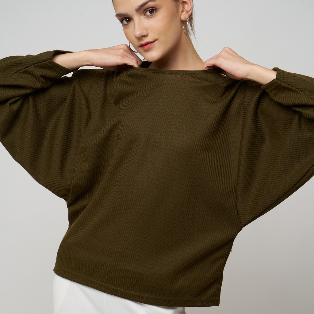 Beli (Hanya di Shopee) Monellina KEKEY Kaos Oversize Wanita Batwing Lengan Panjang di sini