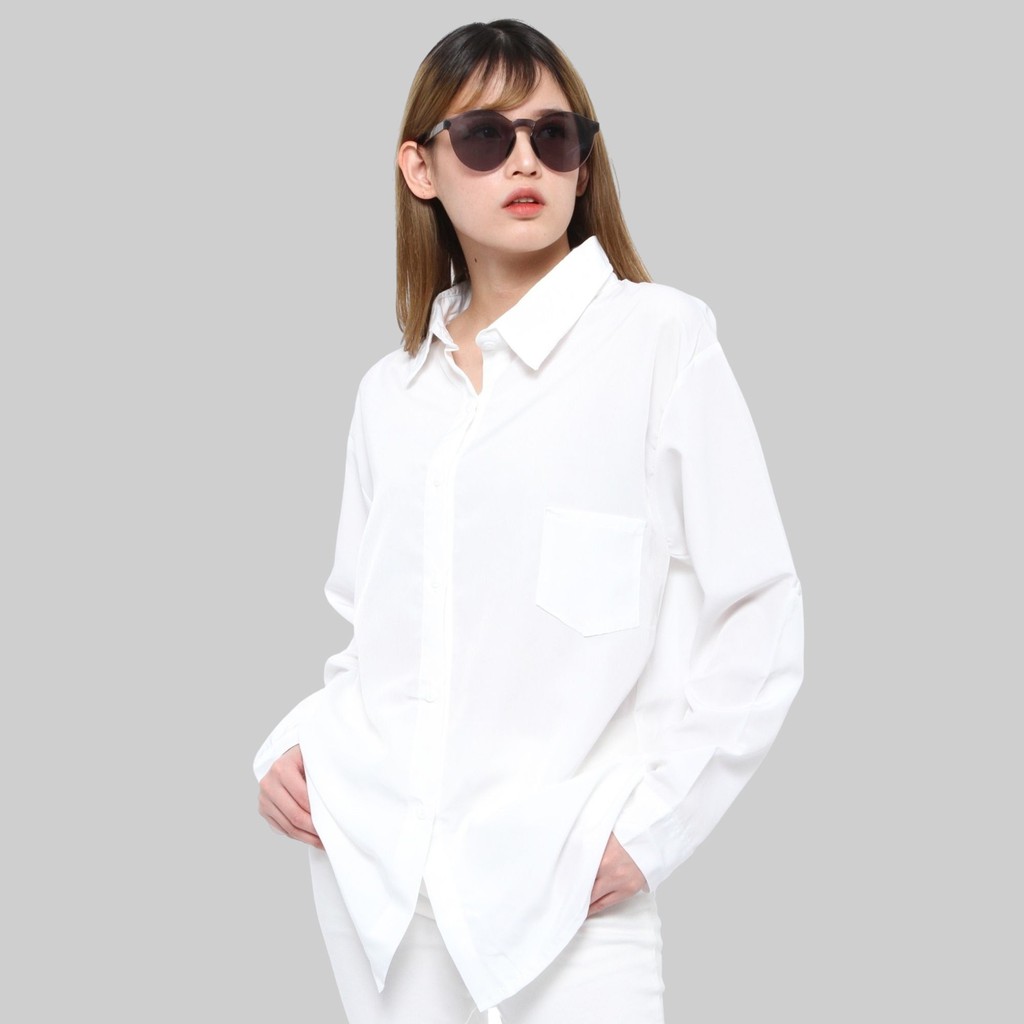 Beli Monellina 0064 Kemeja Oversize Wanita Lengan Panjang Polos di sini