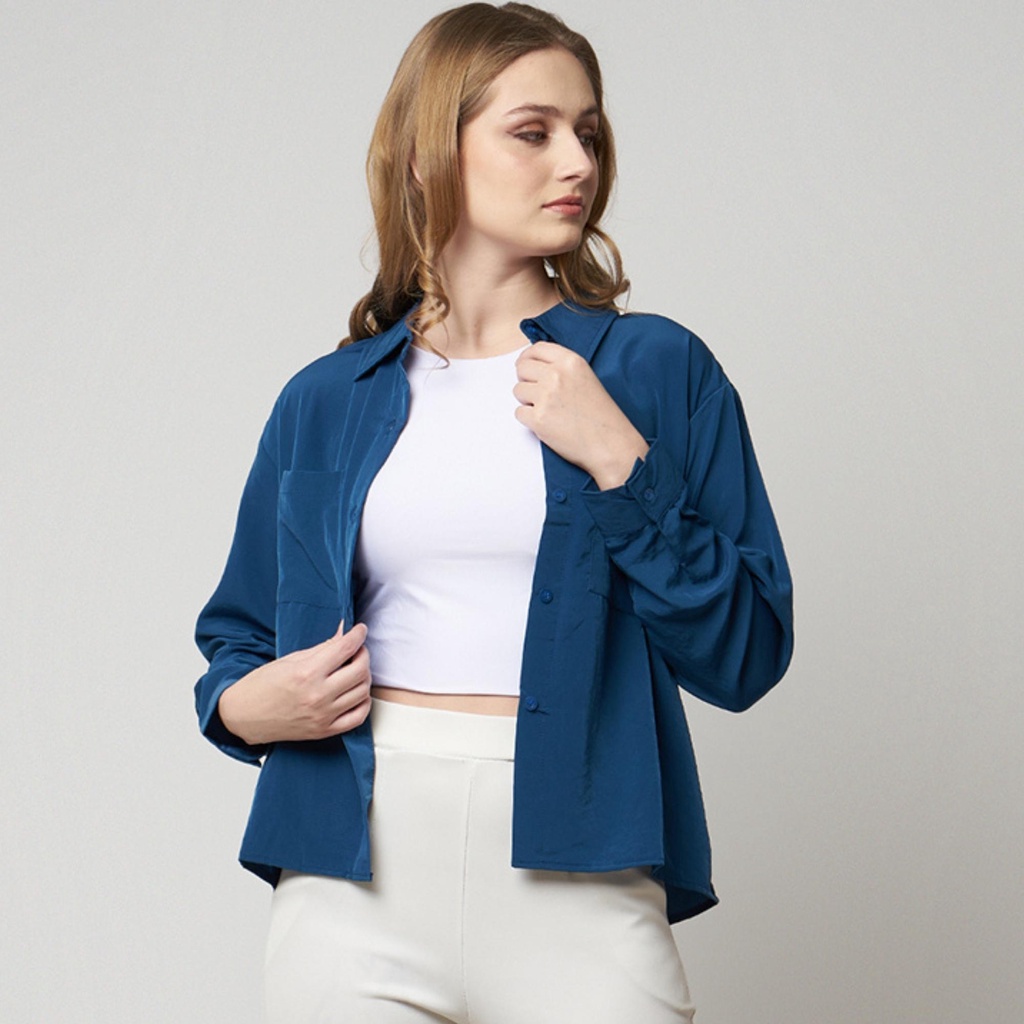 Beli Monellina 601261 Kemeja Crop Oversize Wanita Lengan Panjang di sini